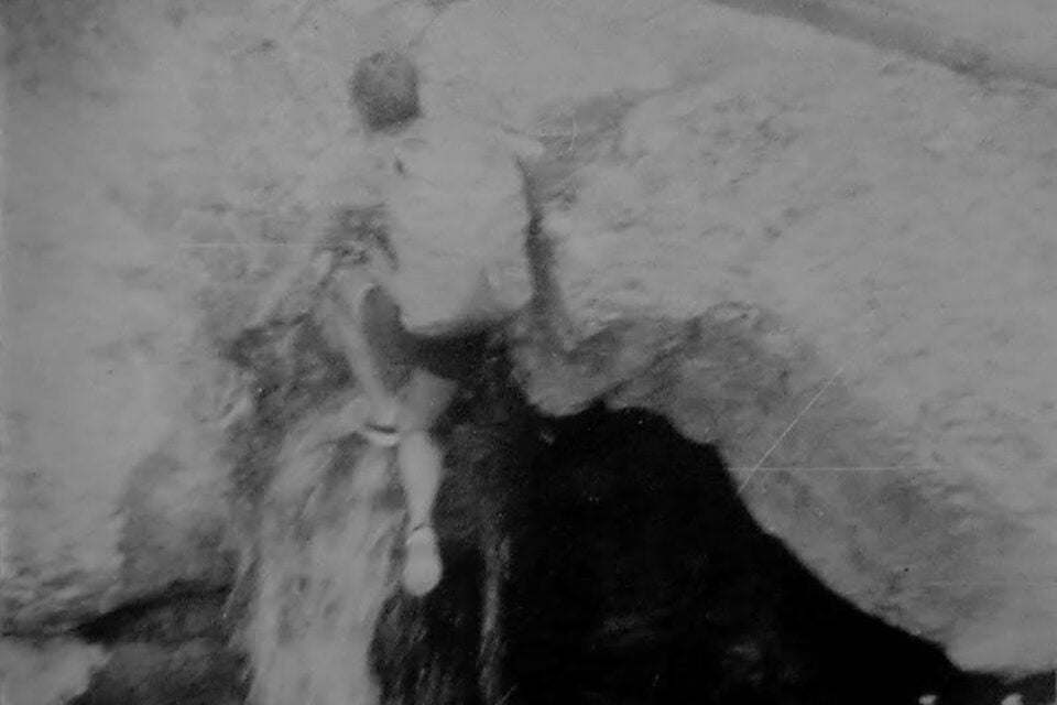 As narration and a panning camera both shift between the three heroes at a picnic table, the boy starts to pop grapes into his mouth as rapidly as possible—continuing incessantly at something like the speed that Sacha Pitoeff deals out cards to Georgio Albertazzi in LAST YEAR AT MARIENBAD. “I had to act naturally,” he says offscreen. “My gluttony cowed and impressed them.” In flight, one of the girls ignites a few weeds with a match and rum: “The Customs were met with a wall of fire.” The boy, after trying repeatedly to mount a bicycle on another chase, eventually throws it down in disgust; he becomes bound, blindfolded, and gagged, and wanders around the rocks interminably: “They were hoping I’d fall into a ravine. They forget how well I knew the area.”
